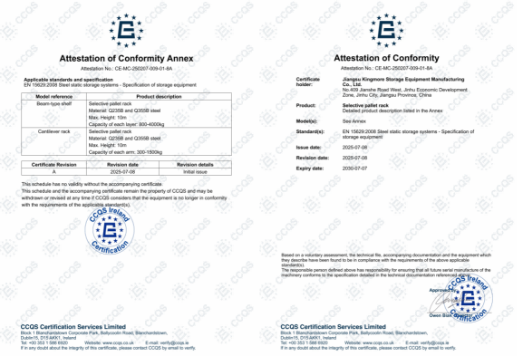 Oct 29, 2025Kingmore is proud to announce that our warehouse racking systems have been awarded the CE Marking, demonstrating full compliance with the stringent health, safety, and environmental protection standards of the European Economic Area.